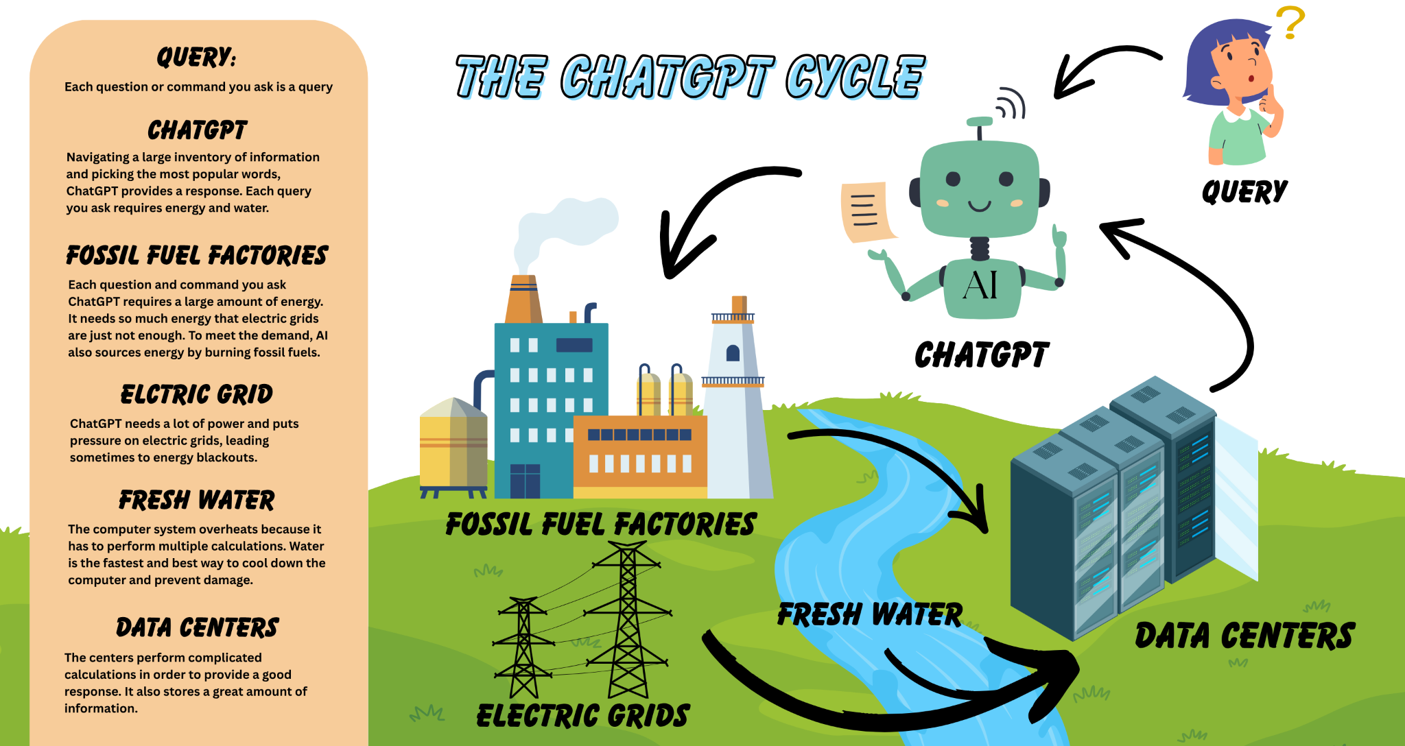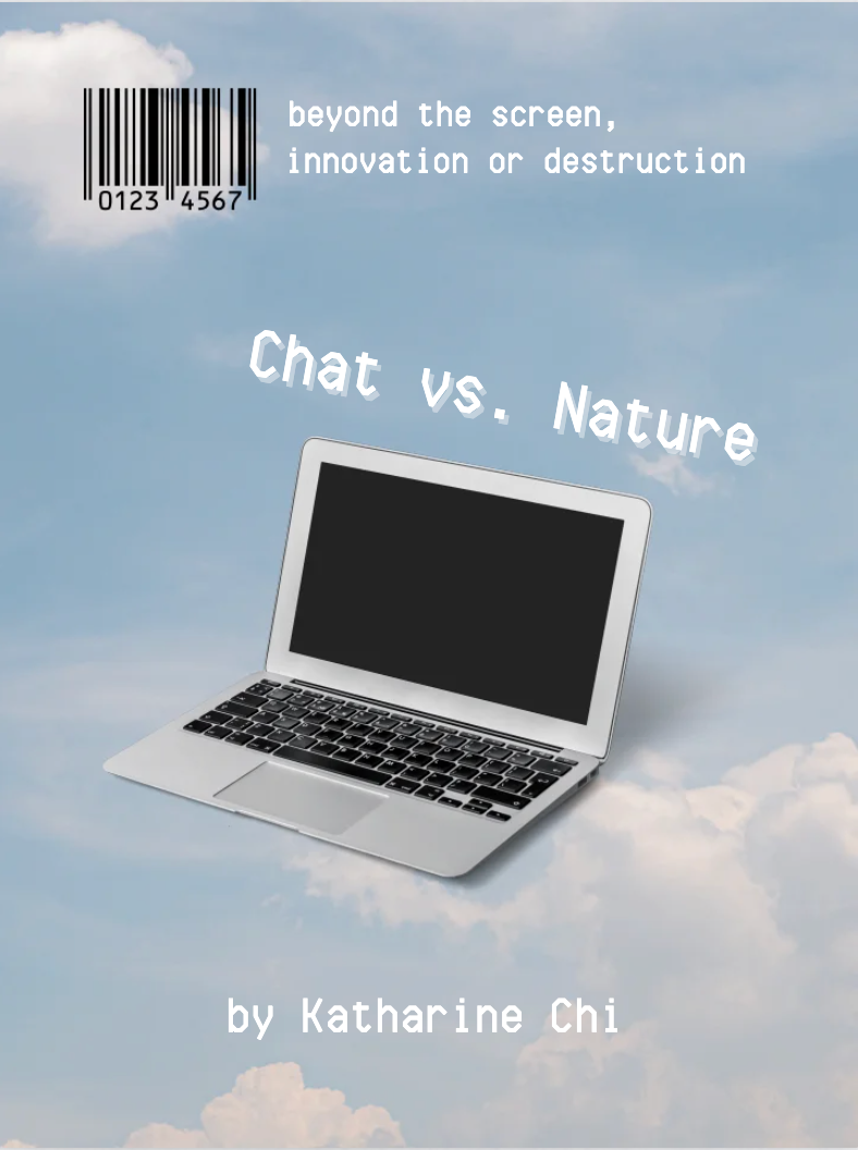 For my capstone project, I wanted to create a visually appealing magazine booklet for the Gen Z audience that explains the relationship between ChatGPT and the natural environment. The magazine is aimed towards education through creative writing and visual media. I wanted to create a classroom poster for elementary school children, so I can introduce this important relationship at an early age.